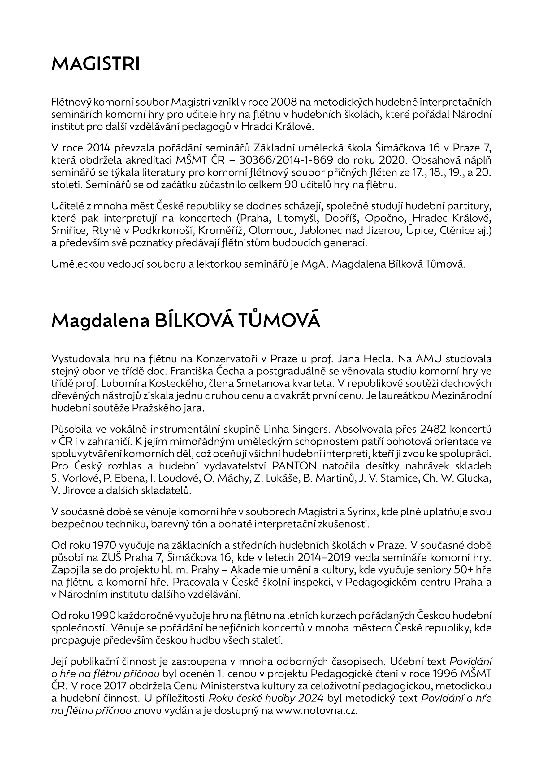 Účinkuje flétnový soubor MAGISTRI pod vedením Magdaleny Bílkové Tůmové, violoncello Milada Gajdová