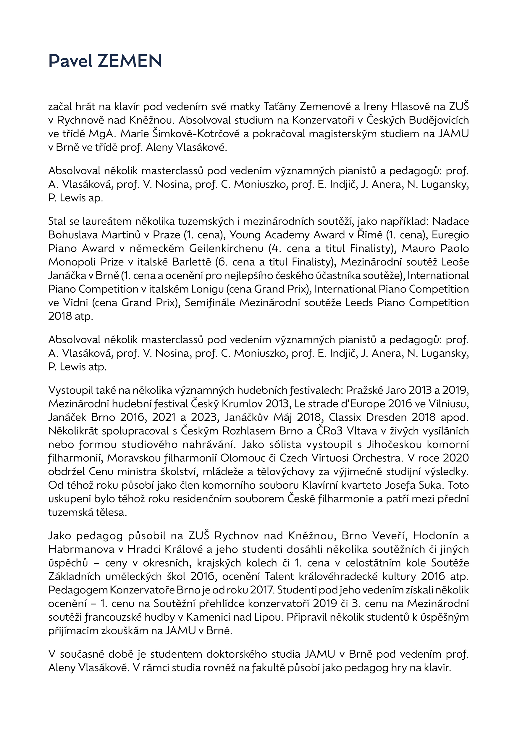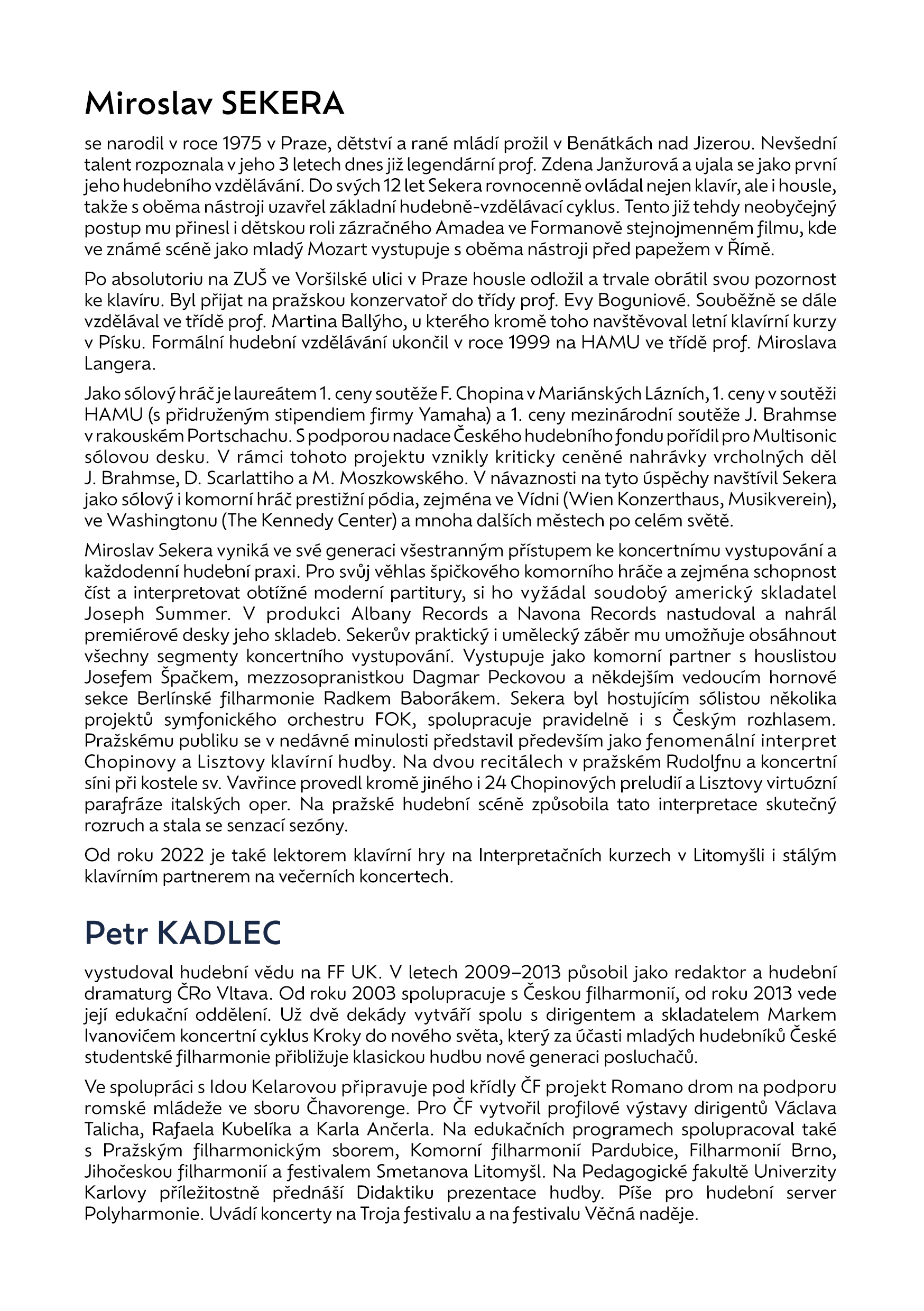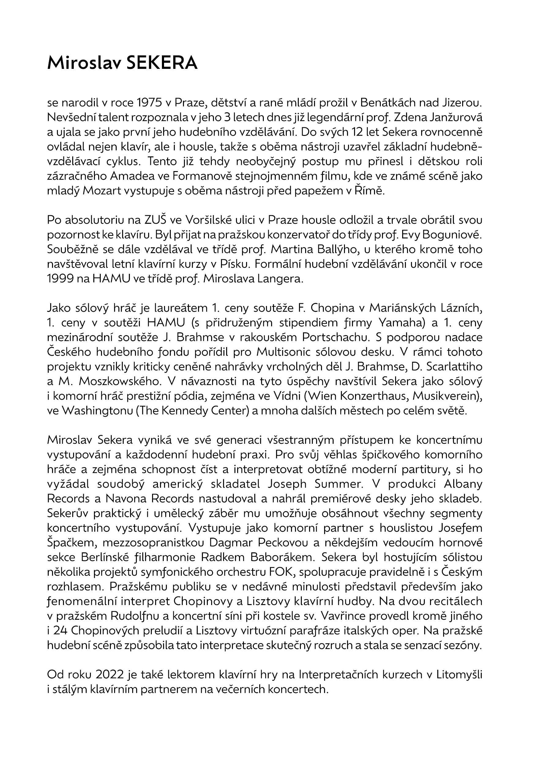Účinkuje Miroslav Sekera, klavírní lektor kurzů, který se představí ve svém sólovém recitálu