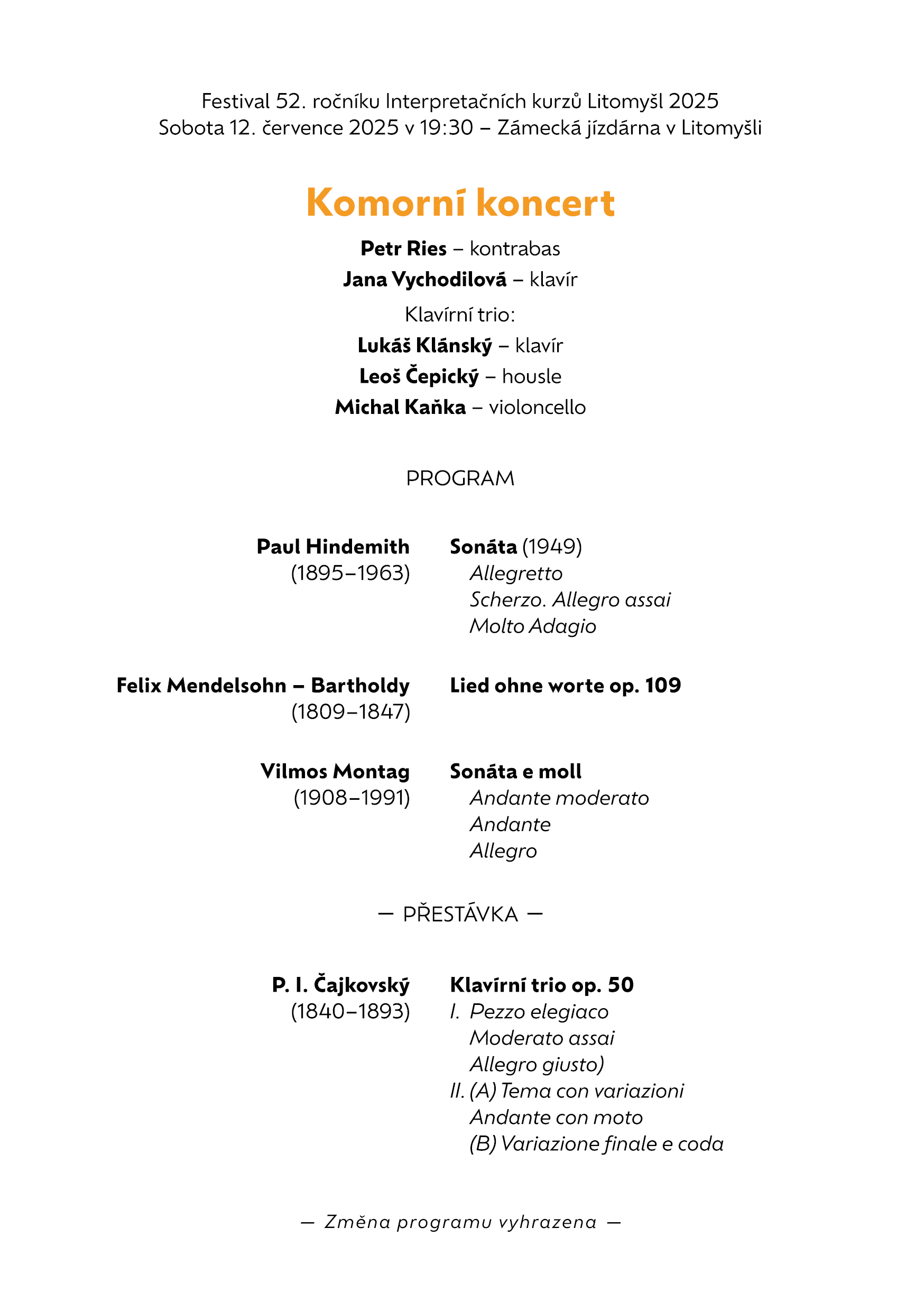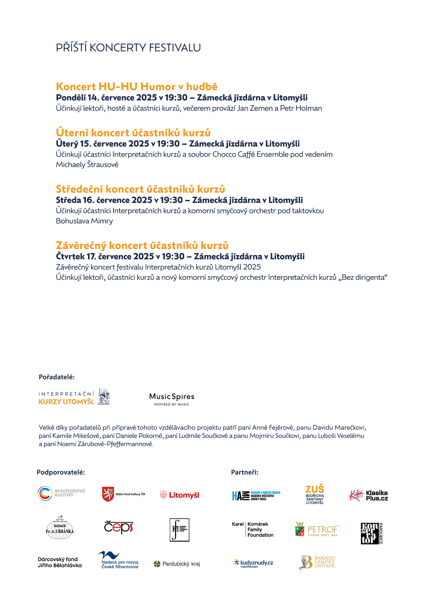 Nedílná součást 52. ročníku Interpretačních kurzů Litomyšl 2025