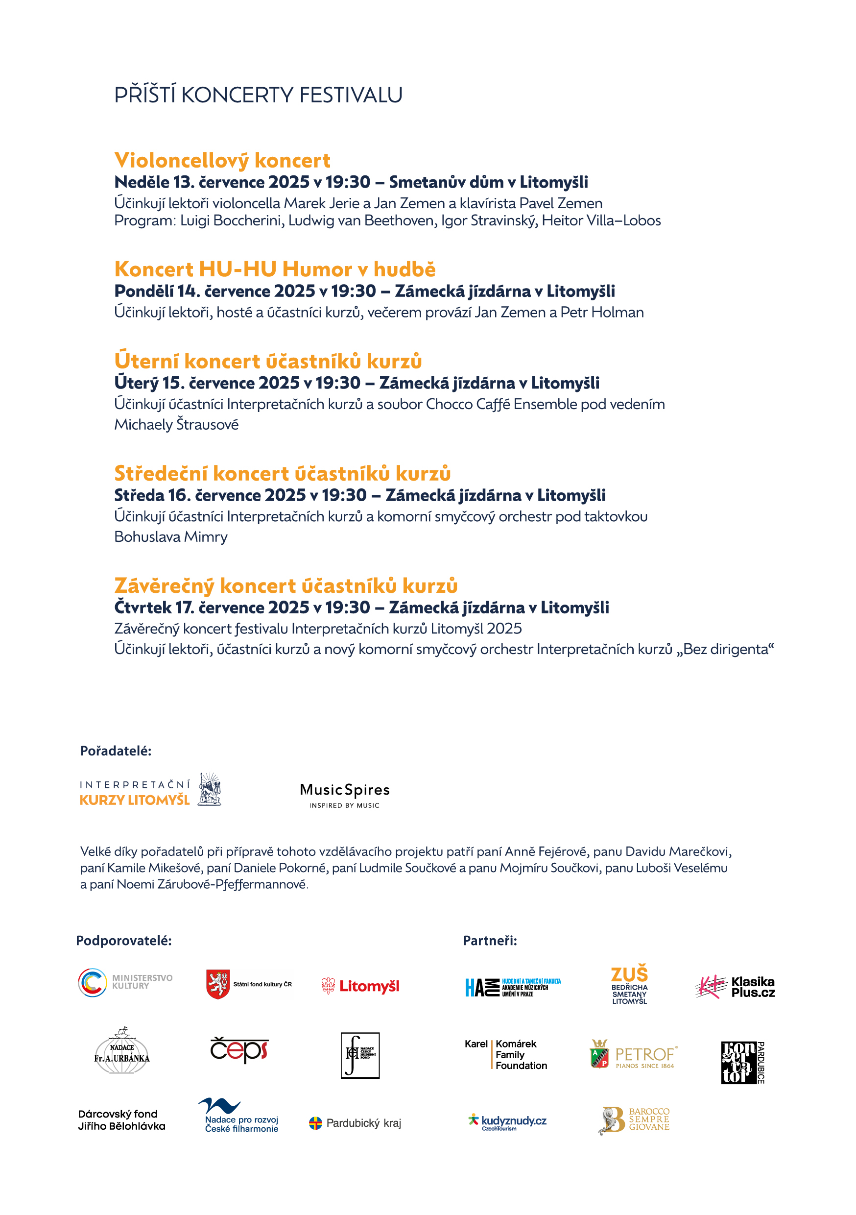 Závěrečný koncert Interpretačních kurzů Litomyšl 2025.